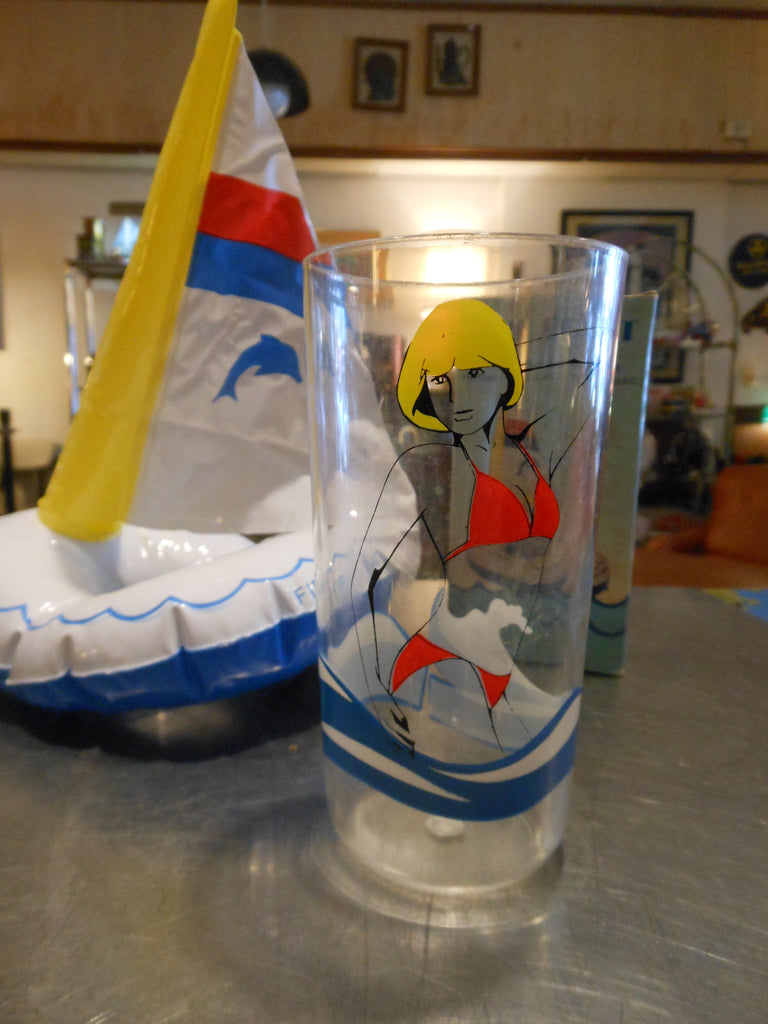For the pool, tub or lake - fun inflatable sailboat and plastic cup made by Crest Industries. New in the box. 10" tall inflated.